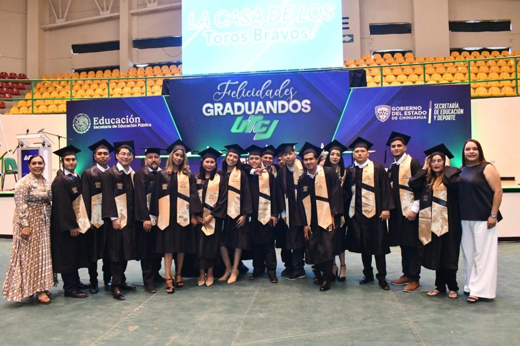 Ciudad Juárez.- La Universidad Tecnológica de Ciudad Juárez (UTCJ), celebró la ceremonia de graduación de 901 estudiantes, tanto de nivel Técnico Superior Universitario (TSU) como de Licenciatura y Posgrado, en las instalaciones del gimnasio del Colegio de Bachilleres.