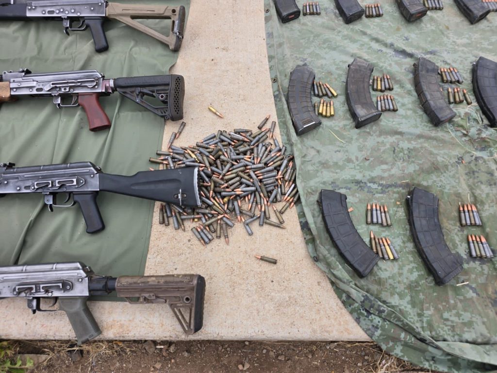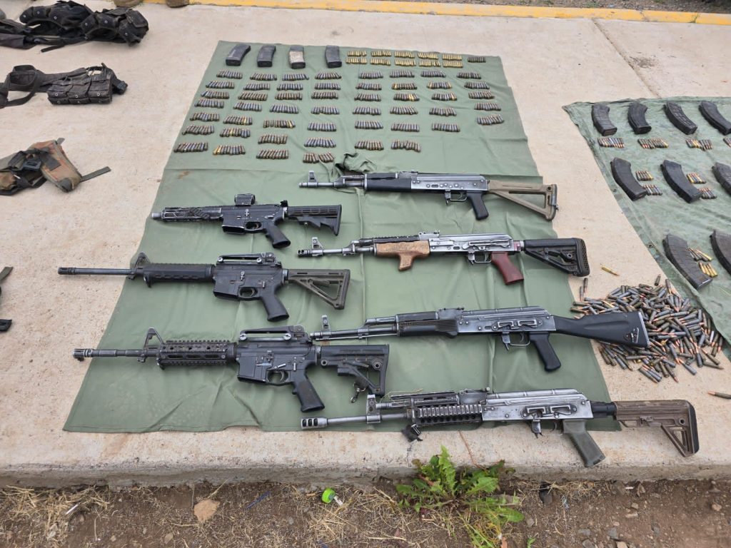 Como parte del proceso por asegurar se contabilizaron siete armas largas tipo fusil de distintos calibres, 40 porciones de polvo blanco con las características propias de la cocaína, más de 1,200 cartuchos útiles, 31 cargadores, un vehículo Jeep Liberty modelo 2002, así como chalecos y fornituras balísticas.