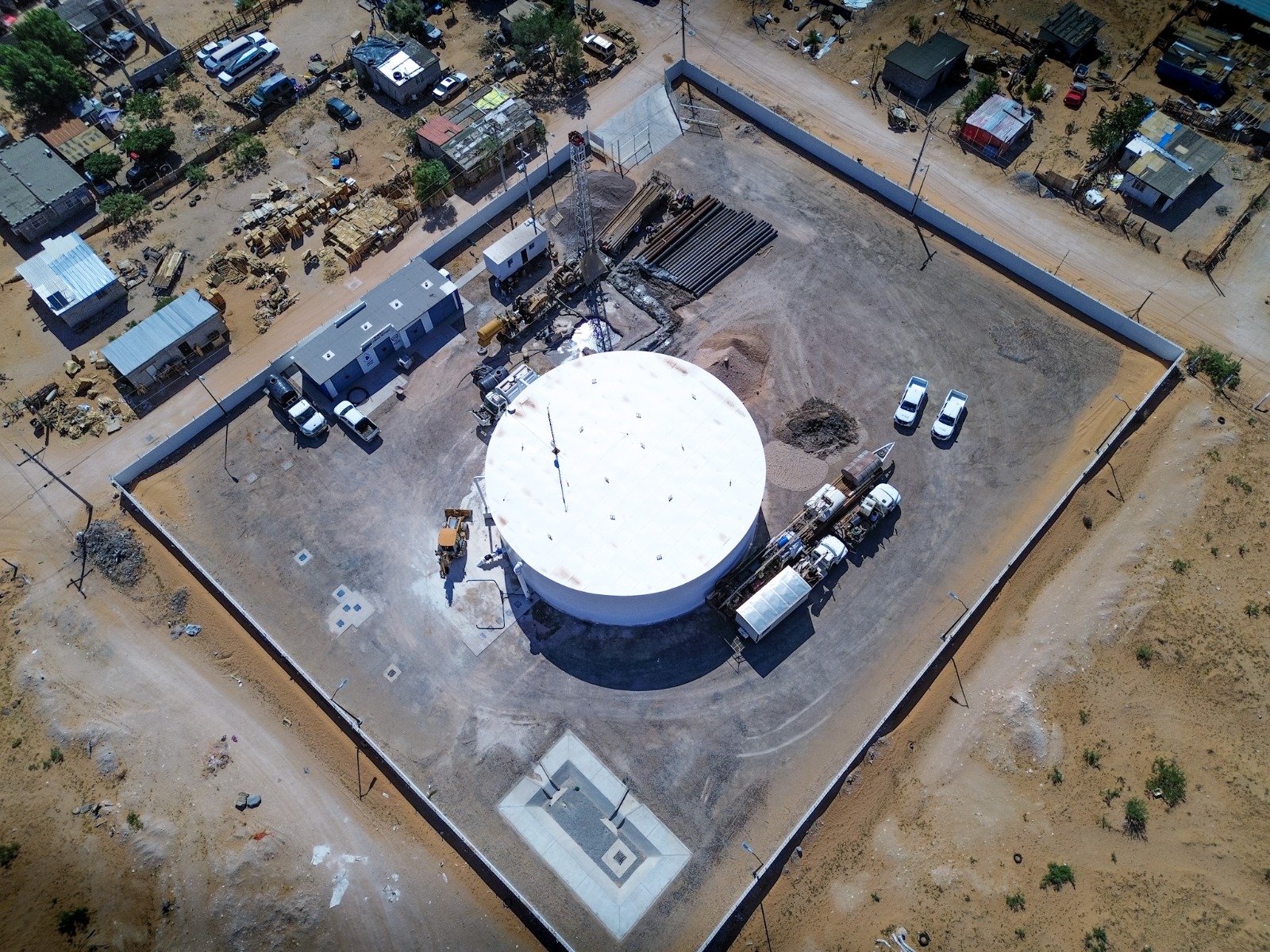 “El agua que se extrae de este pozo va a llegar a este tanque de almacenamiento; el beneficio del almacenamiento es buscar una presión constante en cada uno de los hogares y así evitar fugas, cambios de presión y daños en las tuberías”, puntualizó la ingeniera.