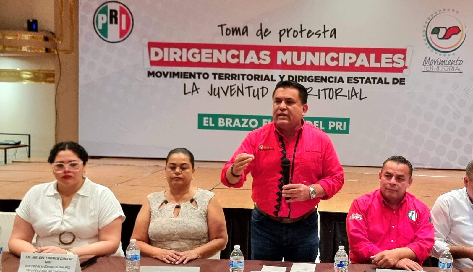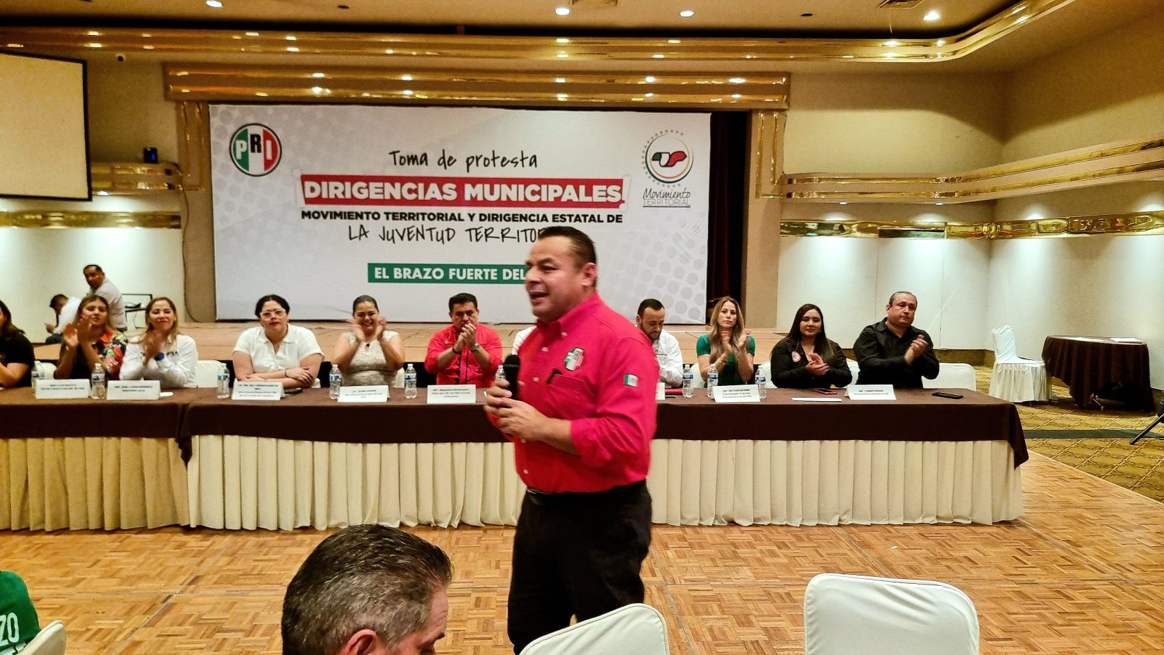 El evento fue encabezado por Erubiel Alonso, dirigente nacional del Movimiento Territorial del CEN del PRI, quien, con firmeza y entusiasmo, confirió a las y los nuevos dirigentes y jóvenes la encomienda de construir desde sus comunidades una política con rostro humano, cercana a la gente y fiel a los principios de justicia social que han caracterizado al Revolucionario Institucional.