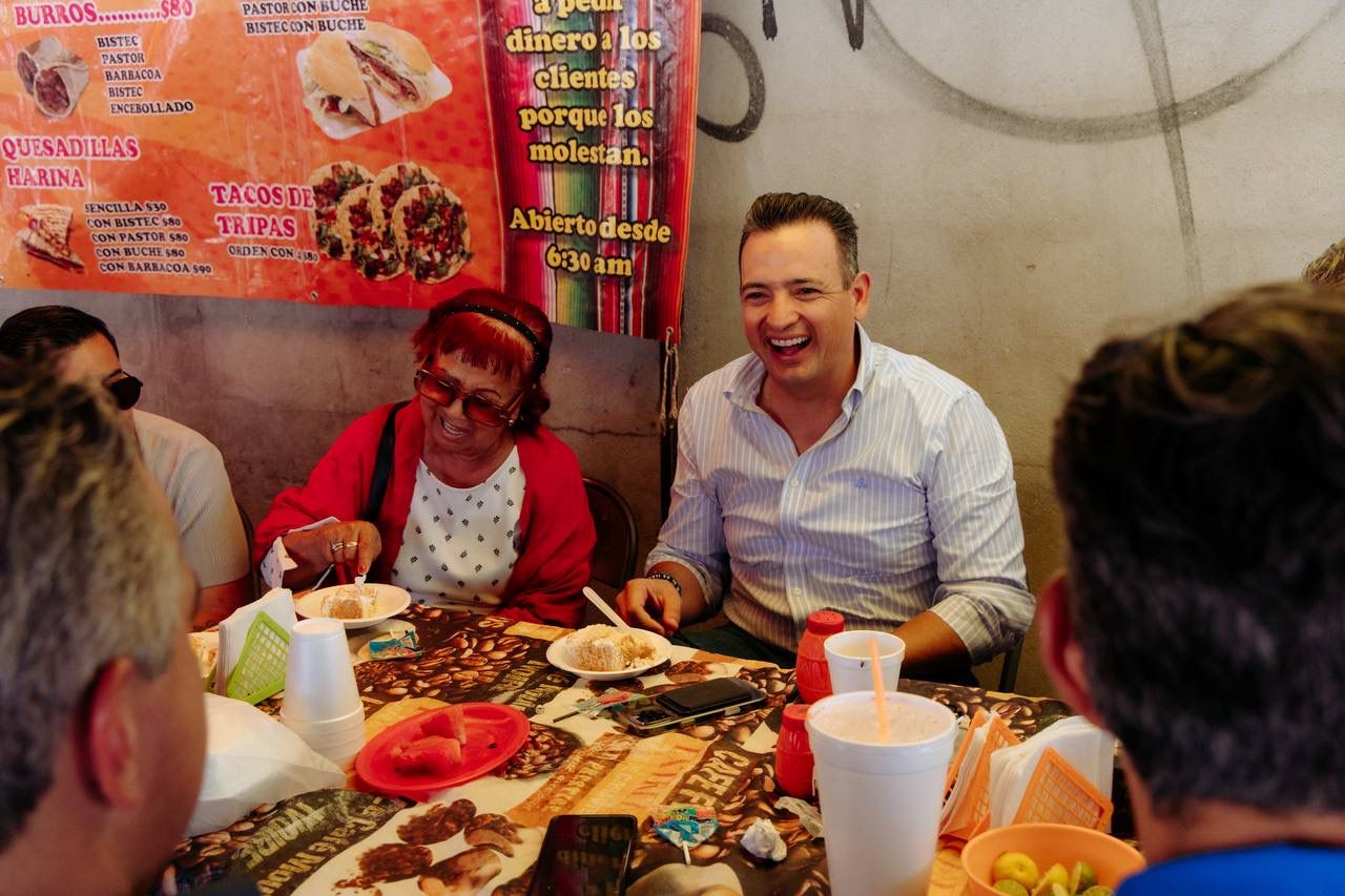 Bonilla aprovechó la visita para convivir con los comerciantes que día a día trabajan por el sustento de sus familias, escuchando sus necesidades y dialogando sobre las problemáticas de la zona. Entre anécdotas, no faltaron los tradicionales tacos de barbacoa y el menudo, que compartió con doña Guille, quien destacó la importancia de seguir luchando por una mejor ciudad, como lo ha hecho a lo largo de décadas.