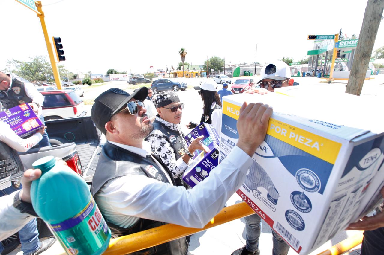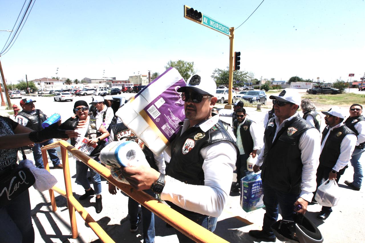 En motocicletas y camionetas los Centauros trasladaron hasta el asilo ubicado en las avenida Insurgentes y Constitución pañales, papel sanitario, cloro, jabón para baño y otros articulos de limpieza que requieren los adultos mayores,.