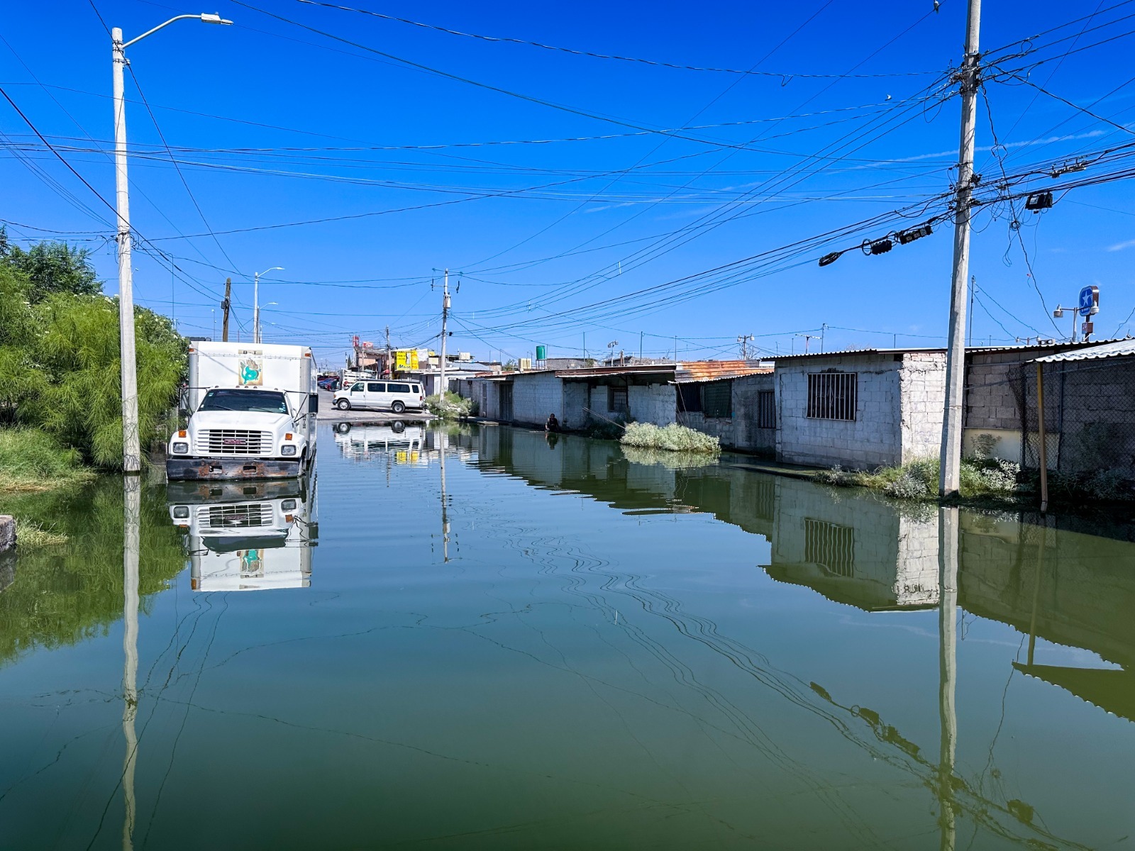 Ciudad Juárez.- La J+ en Acción solucionó un problema derivado de la acumulación de agua de lluvia en un vado natural ubicado en la calle Otomíes, entre las calles Chinacatecos y Acolhuas, de la colonia Azteca.