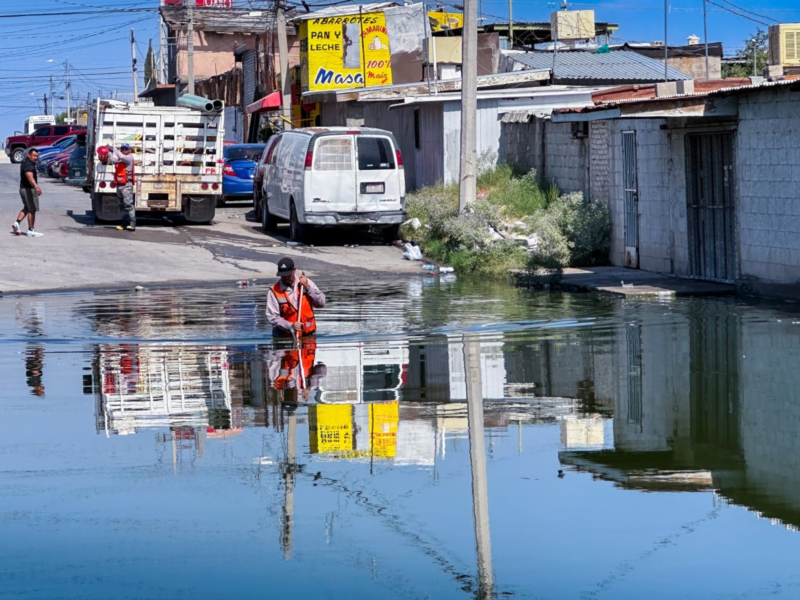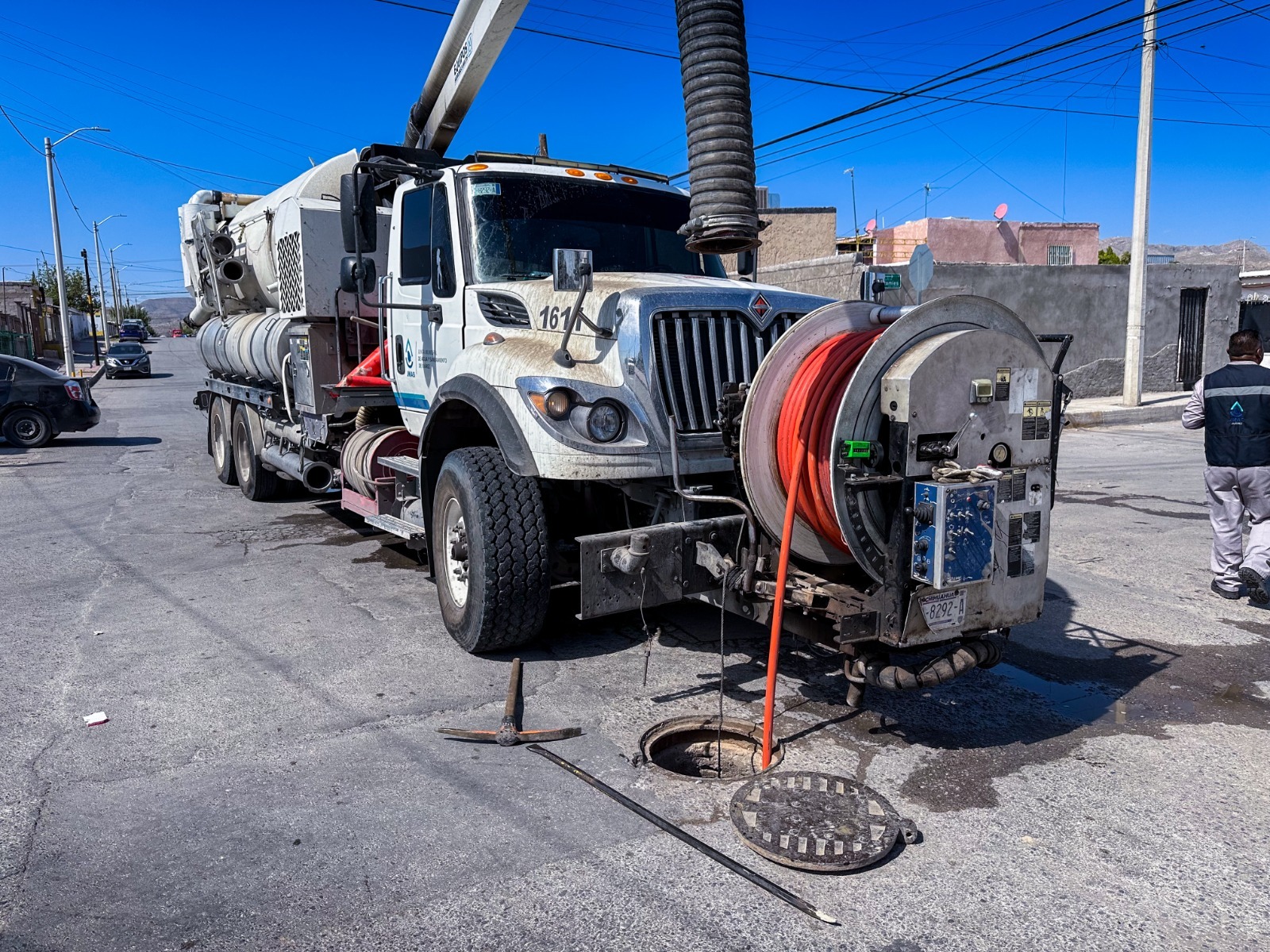 Para poder drenar el líquido, el personal de la Junta de Agua y Saneamiento entró al agua para ubicar la red de drenaje sanitario, el cual fue sondeado con un camión vactor para eliminar la obstrucción y permitir el flujo del agua de lluvia.