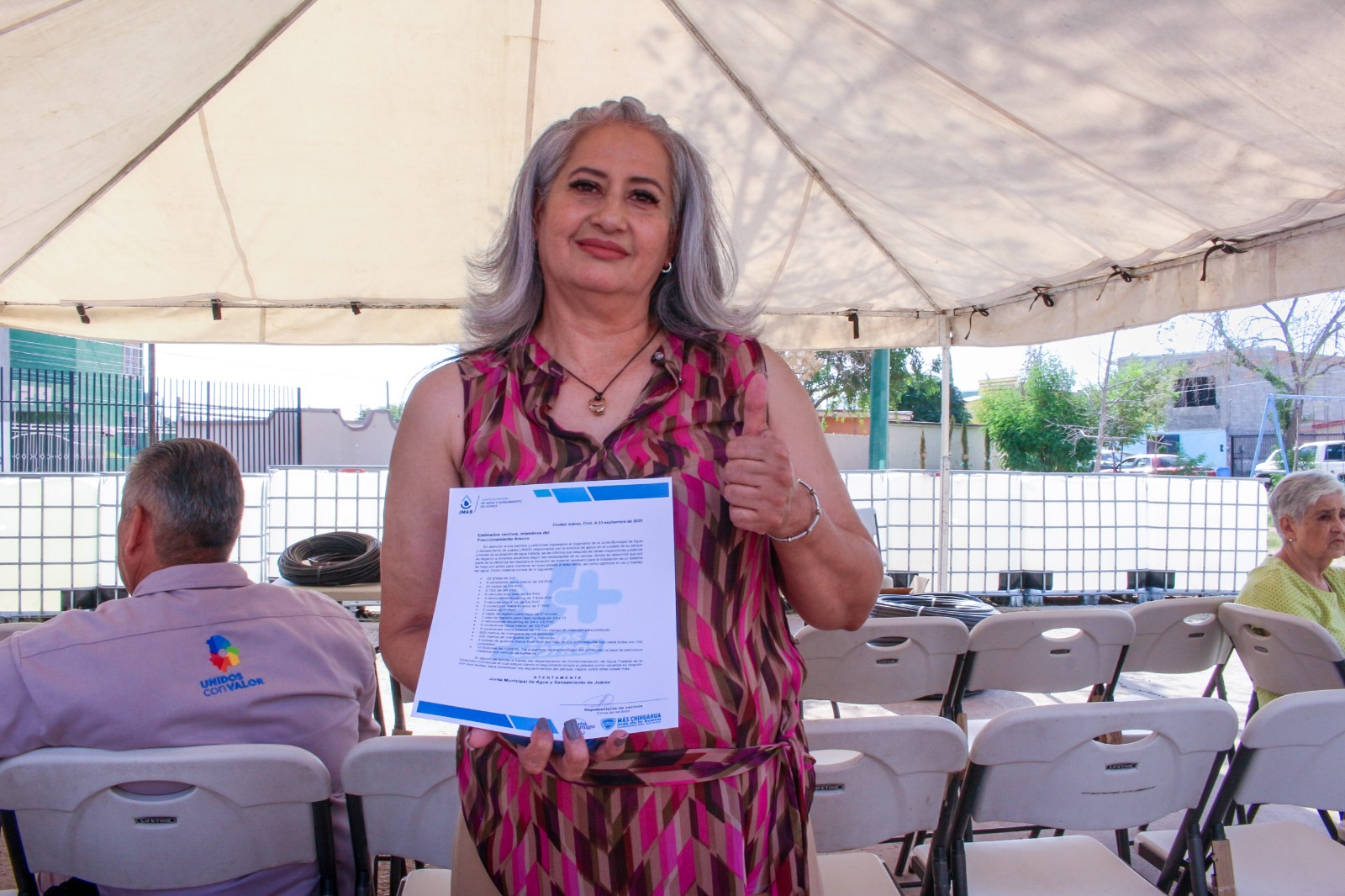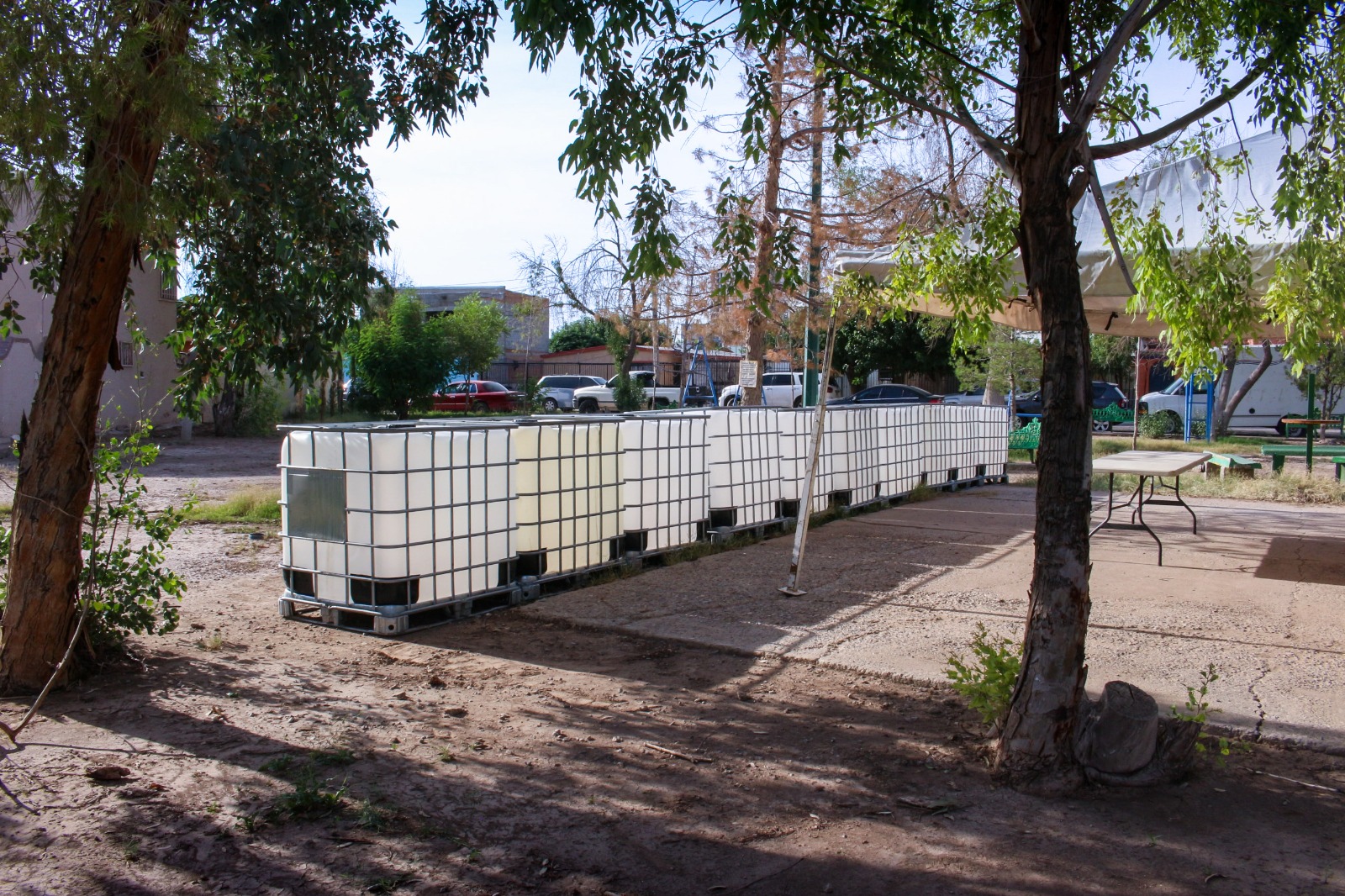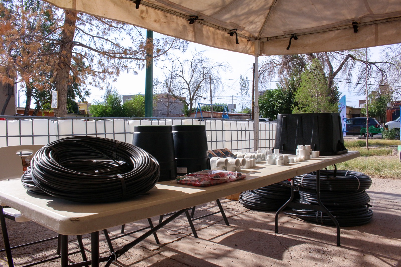 La J+ entregó diez bidones de mil litros, así como tubos, mangueras, codos y cajas de registro que servirán para el almacenamiento del agua tratada, la cual se utilizará para regar los árboles, mantener vivo el parque, pero, sobre todo, cuidar el agua potable al utilizar el agua tratada para el riego, así lo informó el director ejecutivo de la J+, Sergio Nevárez.