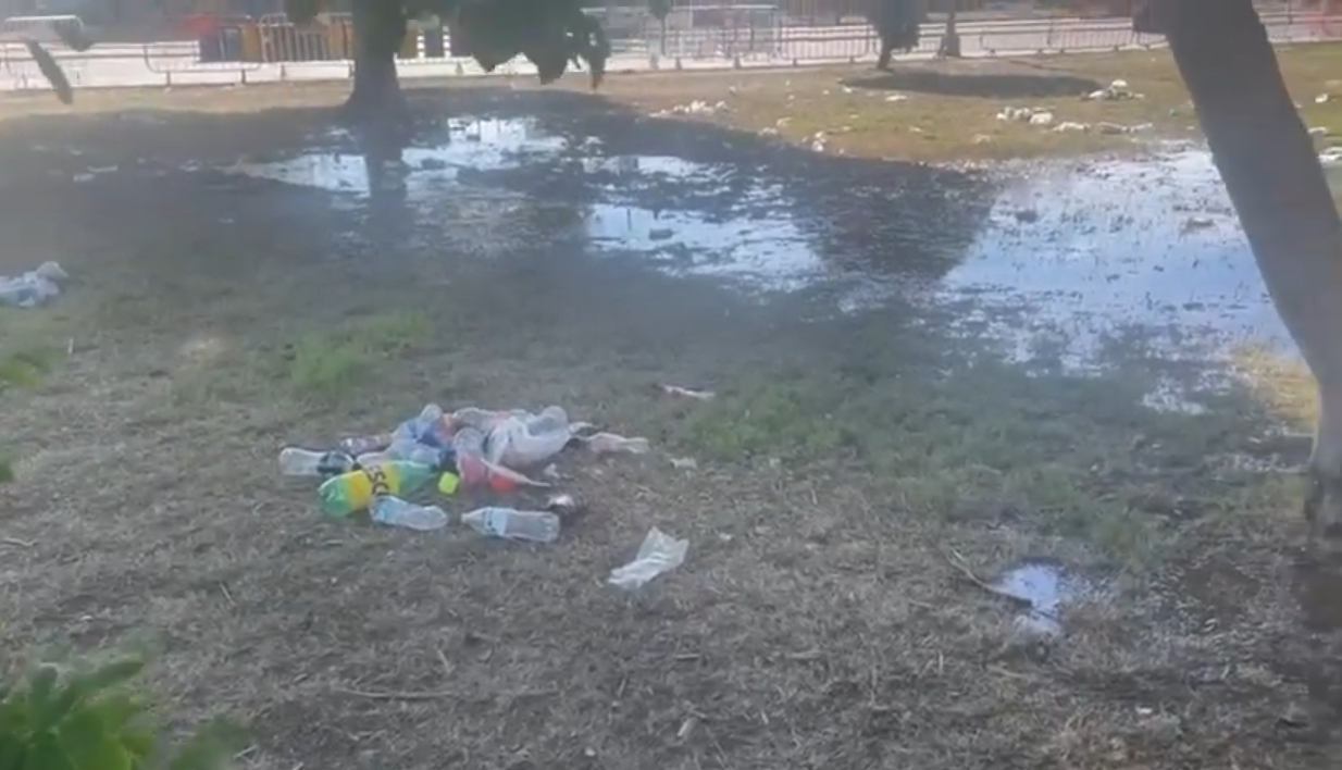 Las áreas verdes también fueron afectadas por la presencia de miles de personas que se congregaron en el lugar, así lo muestran imágenes en vídeo recopiladas por visitantes y deportistas y que fueron hechas llegar a este medio.