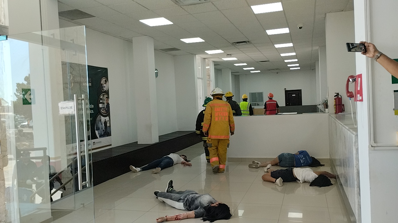 Durante el ejercicio fueron evacuadas 150 personas entre visitantes y empleados de ambas dependencias que atendieron las indicaciones de prevención, señaló el subdirector de la Aduana, Rafael Buenrostro y la encargada de Protección Civil de la dependencia federal Haydé Molina.