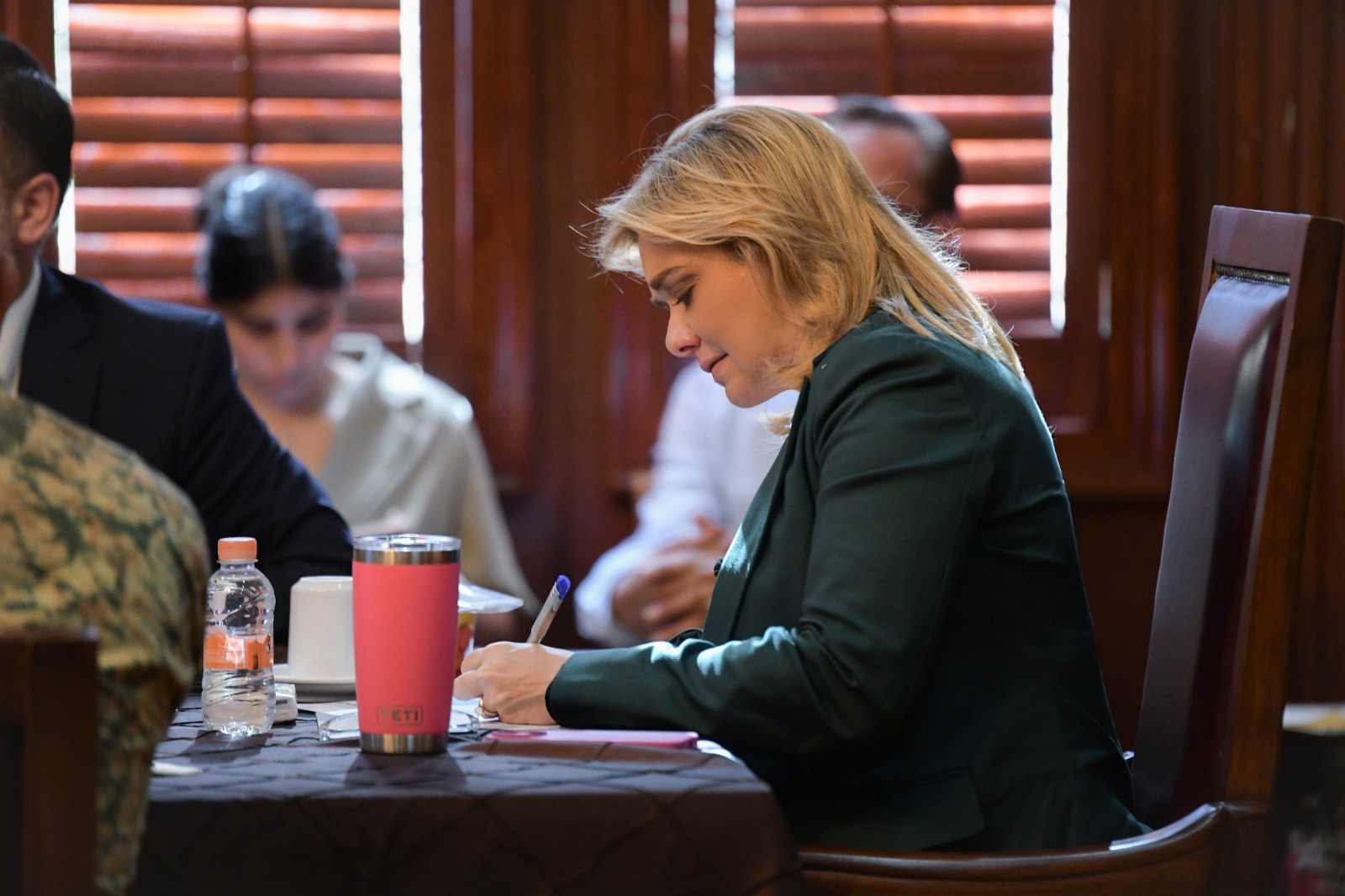 También estuvieron el delegado de la Fiscalía General de la República, Ramón Badillo; el coordinador de la Guardia Nacional, Alejandro Rivas; el representante de la Secretaría de Seguridad y Protección Ciudadana, Fernando Ávila; la delegada de programas del Bienestar, Mayra Chávez, y la representante del Instituto Nacional de Migración, Zaira Carrasco.