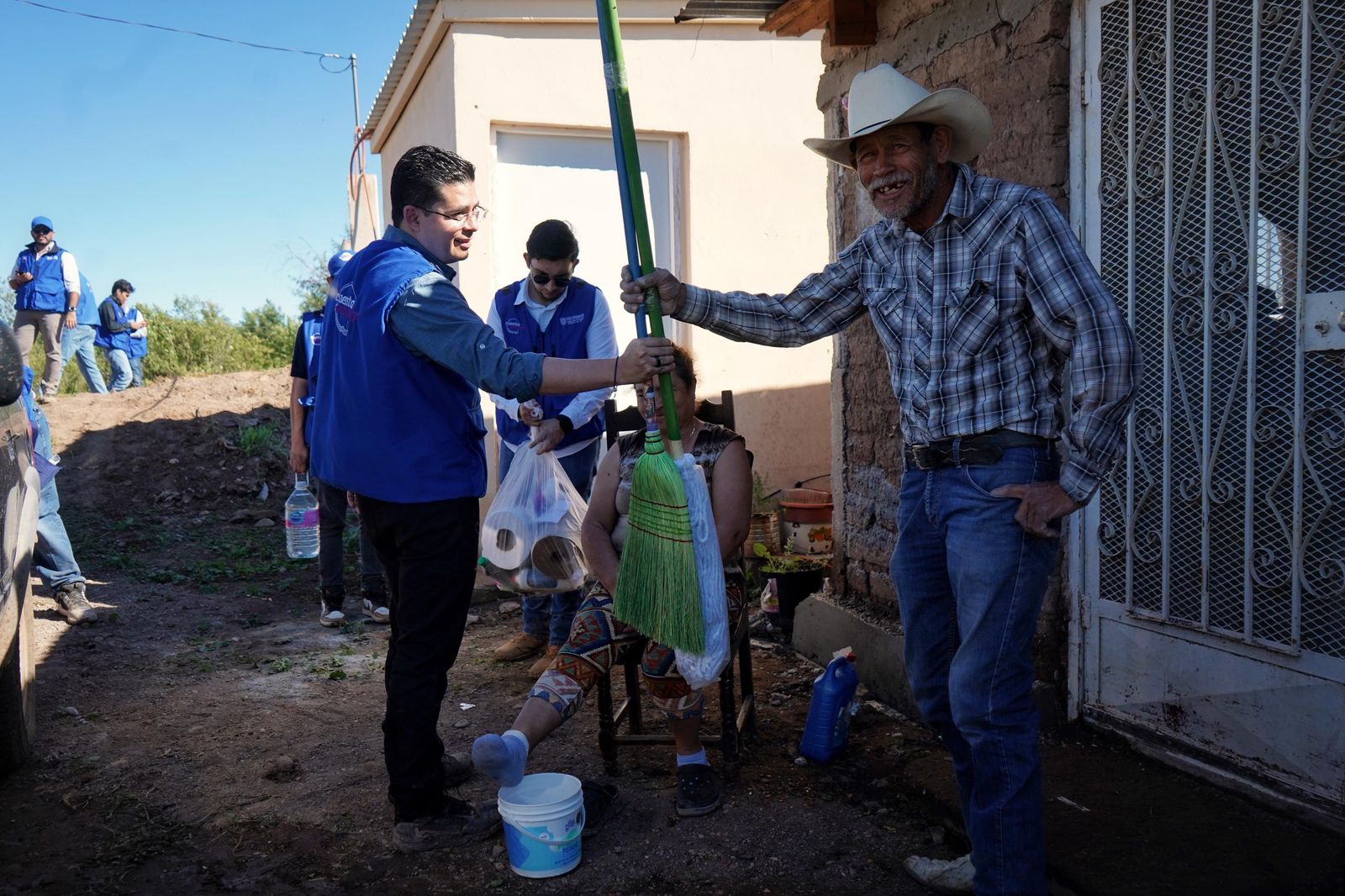 Loera destacó que desde el primer momento de las inundaciones, la gobernadora Maru Campos estableció comunicación directa con los ayuntamientos para coordinar la entrega de apoyos de manera inmediata, ante la situación de vulnerabilidad que enfrentaban las familias.