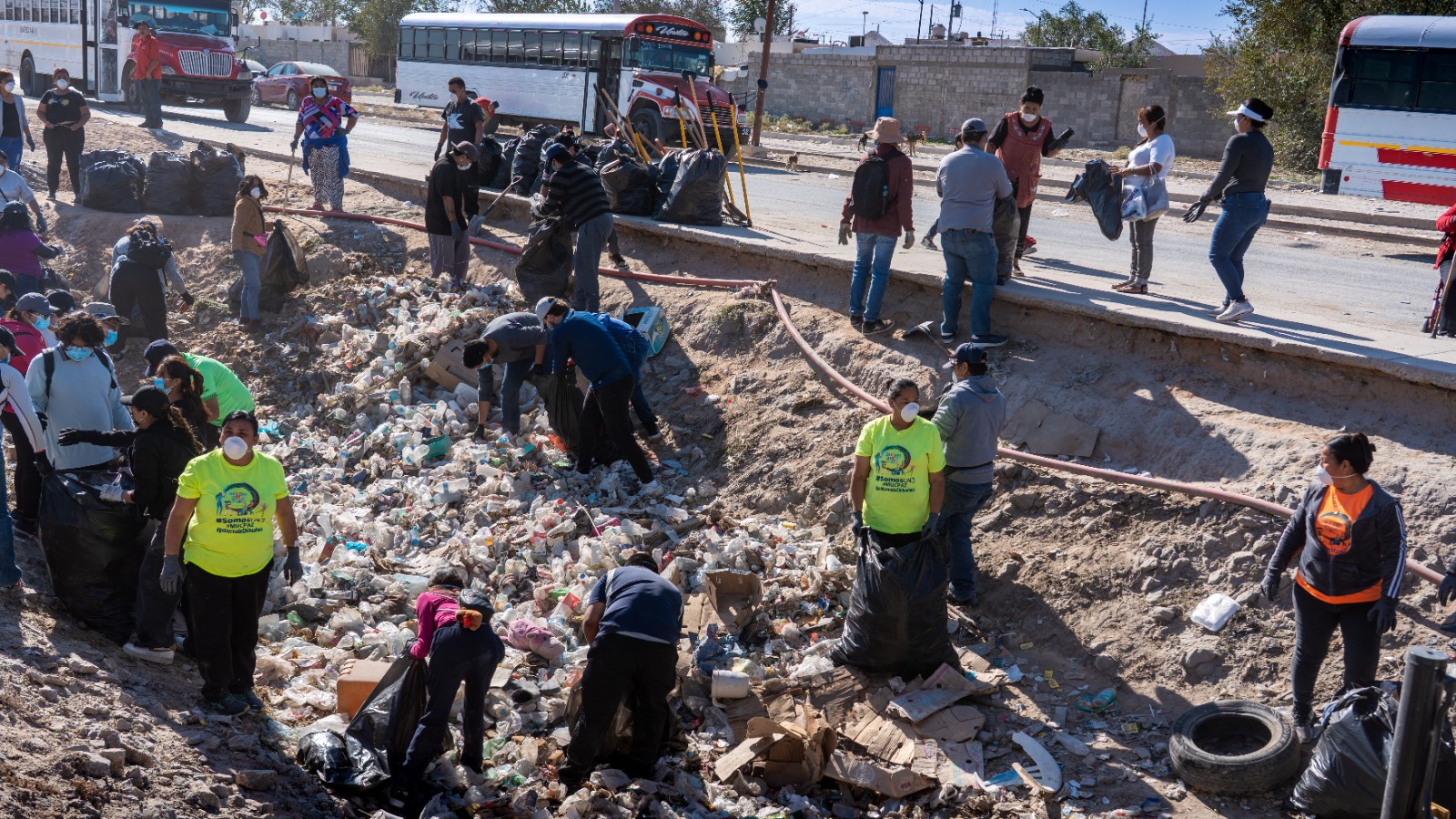 A este trabajo comunitario de limpieza se unieron estudiantes de la Universidad Autónoma de Ciudad Juárez (UACJ) quienes barrieron calles y levantaron kilos de basura.