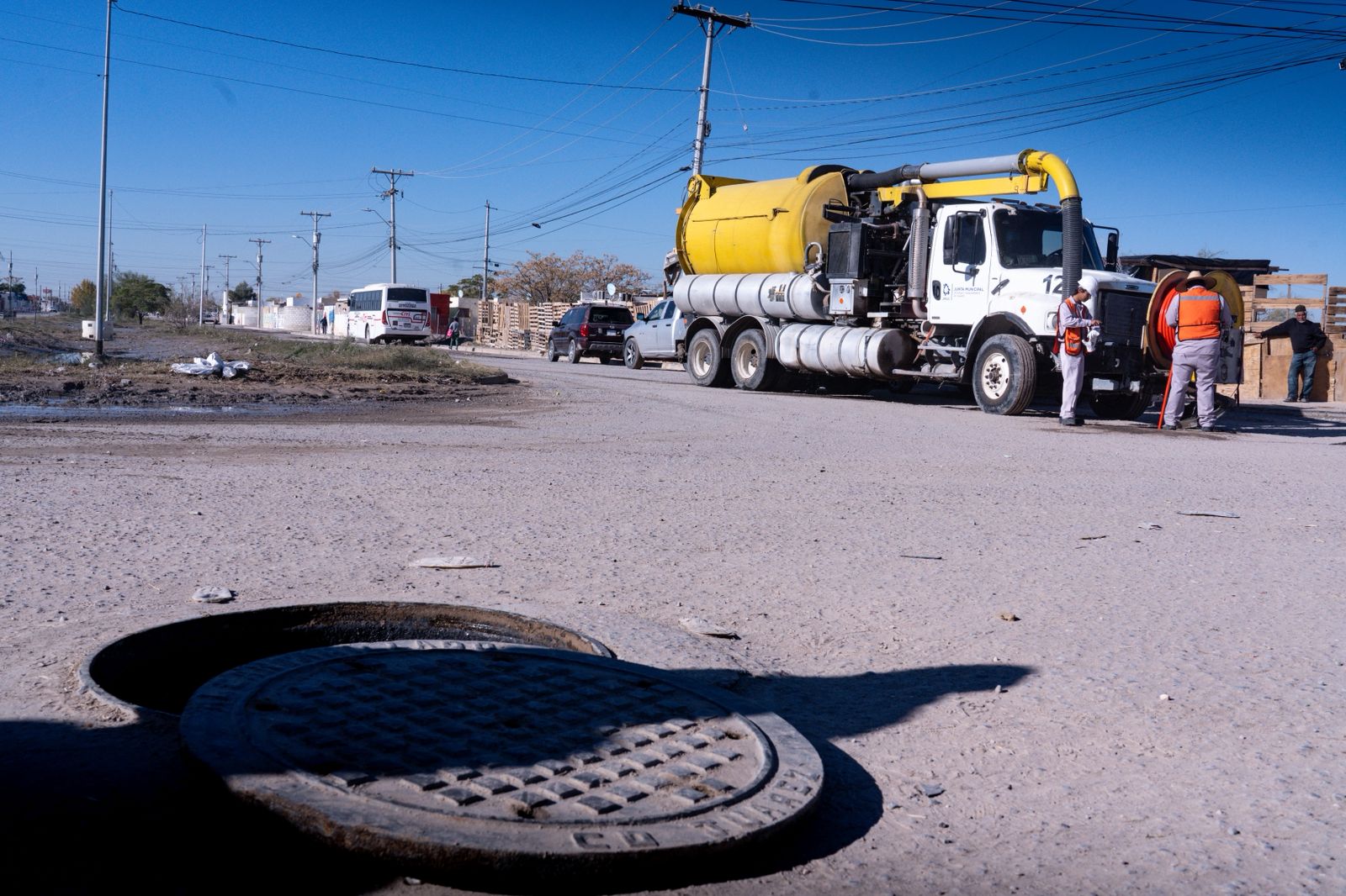 La Junta de Agua y Saneamiento de Juárez, concluyó los trabajos de mantenimiento en la red de alcantarillado y el desalojo de aguas negras en el fraccionamiento Villas de Alcalá.