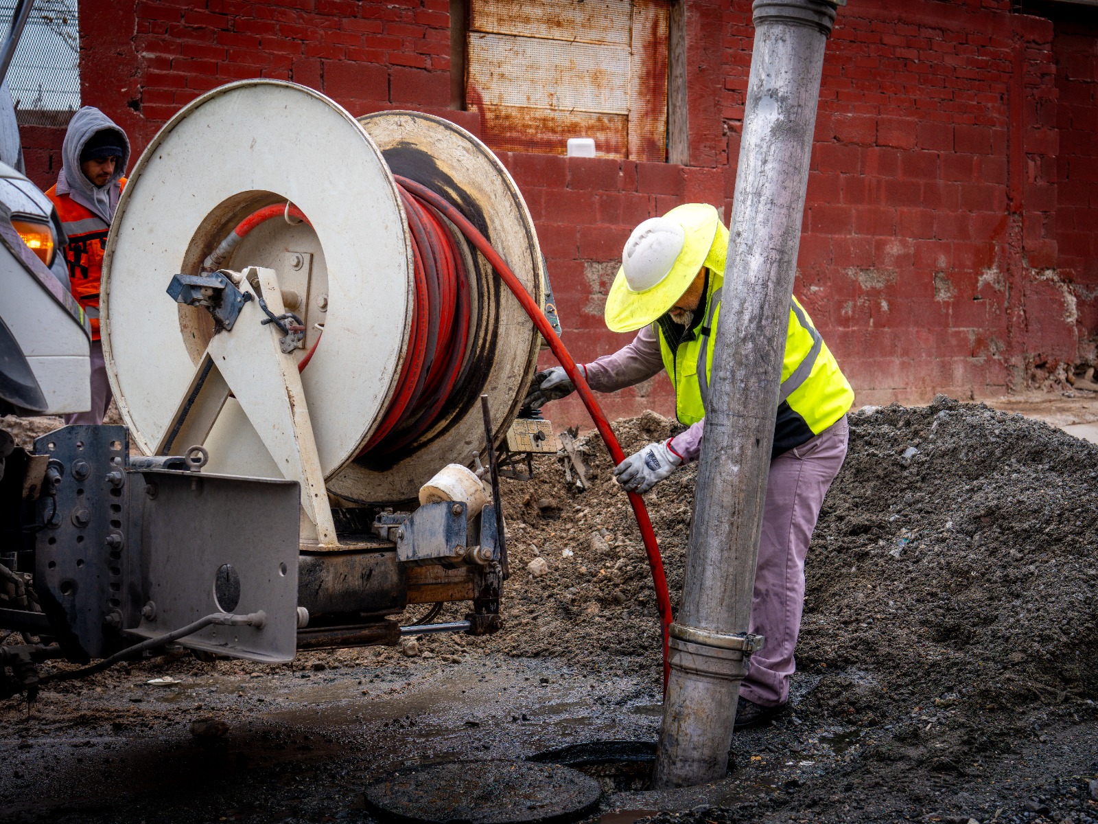 Este martes la Junta de Agua y Saneamiento de Juárez (J+) realizó mantenimiento en el sistema de alcantarillado en Arroyo del Muerto conocido como «El Tapo», ubicado en la colonia Ampliación Felipe Ángeles, ya que las alcantarillas que se encuentran sobre el arroyo, al no contar con la pavimentación correspondiente y este se llena de piedra, basura y desperdicios, por lo cual fueron necesarios estos trabajos para que no presente problemas futuros.