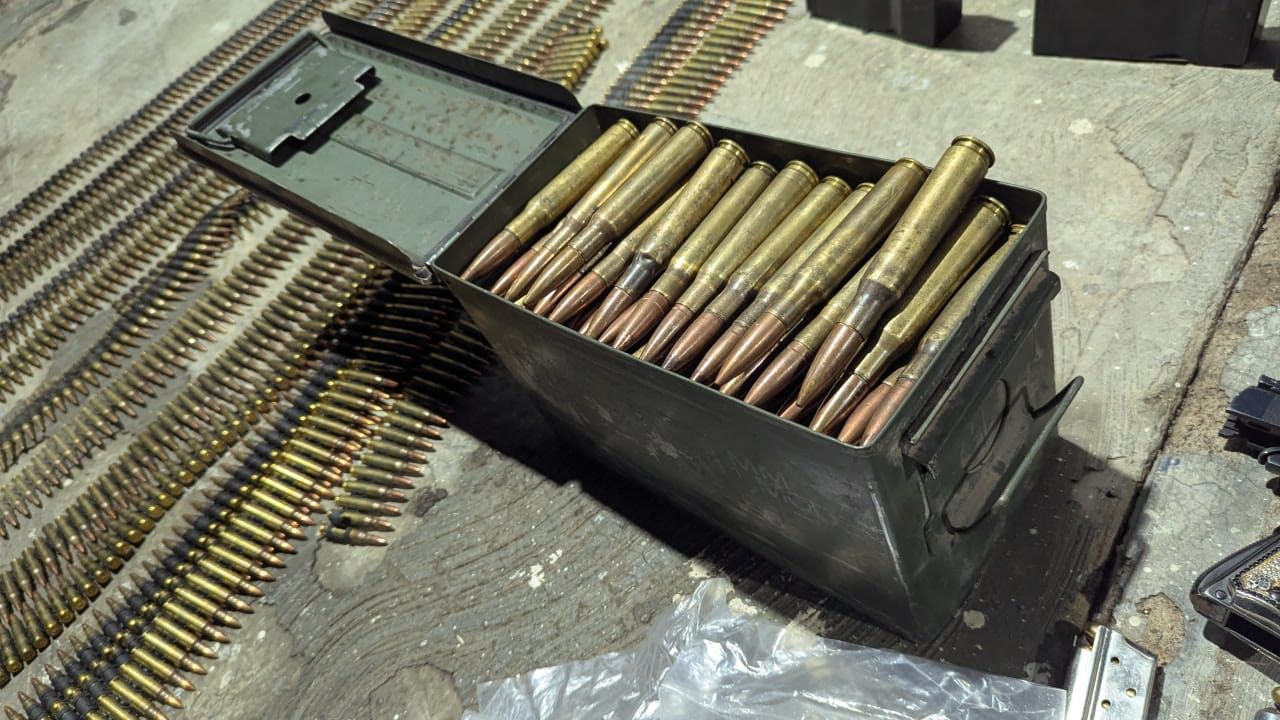 Durante la inspección de los vehículos, se aseguraron diversas armas de fuego, entre ellas un fusil Barrett calibre .50, tres pistolas, tres fusiles de asalto y una ametralladora, además de 34 cargadores y más de 2 mil 500 cartuchos útiles de distintos calibres.