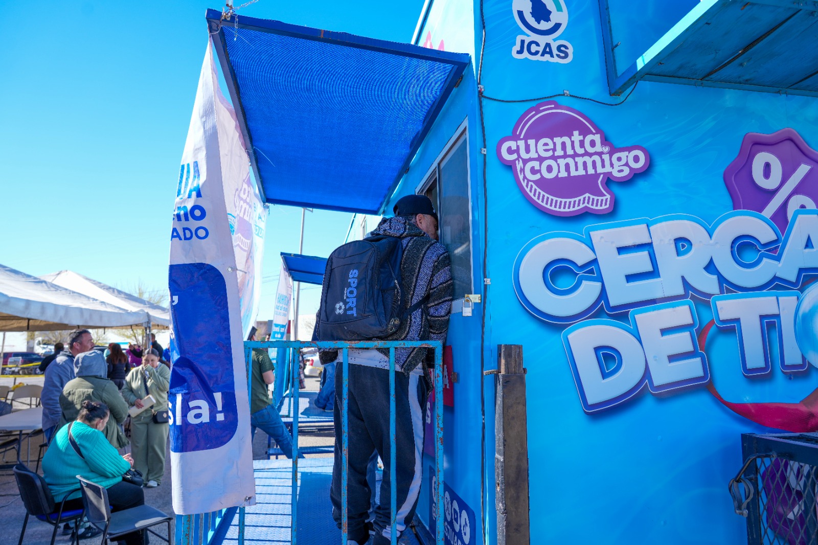 La Junta de Agua y Saneamiento de Juárez, acercó este sábado sus servicios al estacionamiento de Soriana Porvenir, facilitando a los usuarios la oportunidad de regularizar sus cuentas, sin necesidad de acudir entre semana a oficinas.