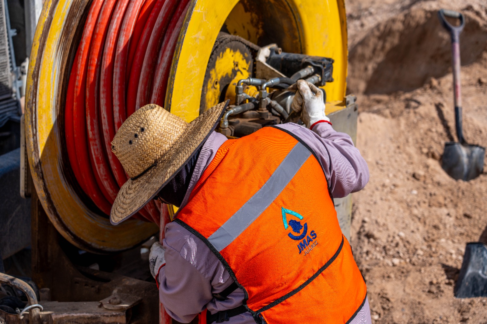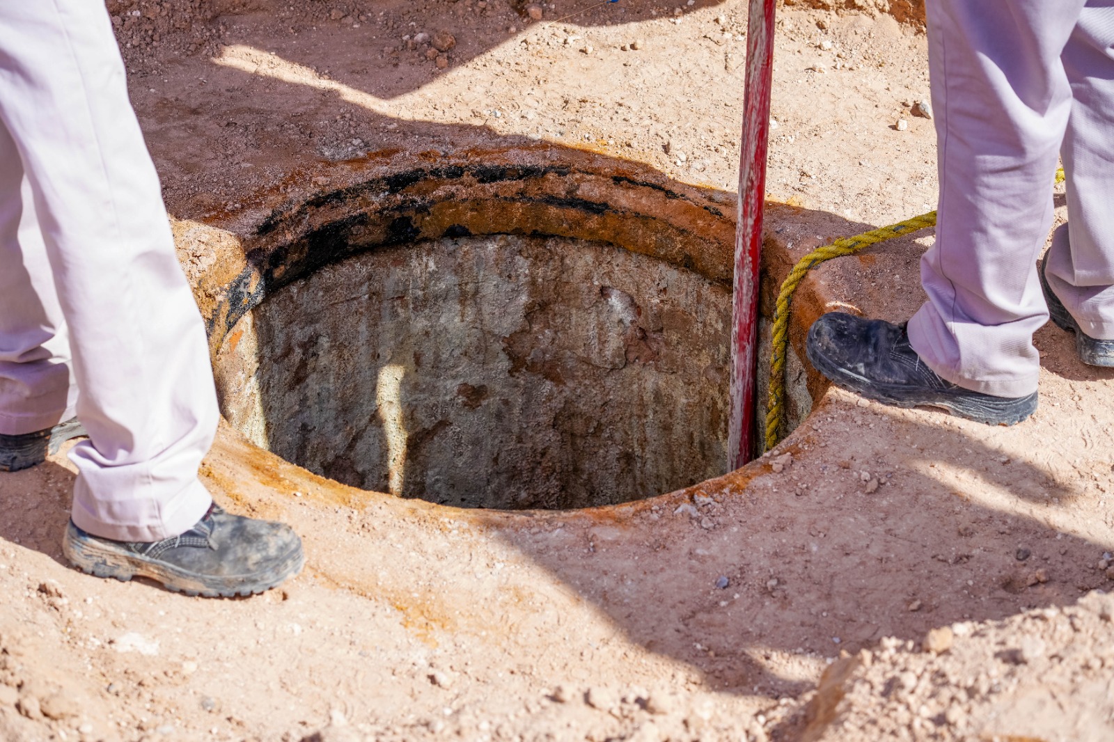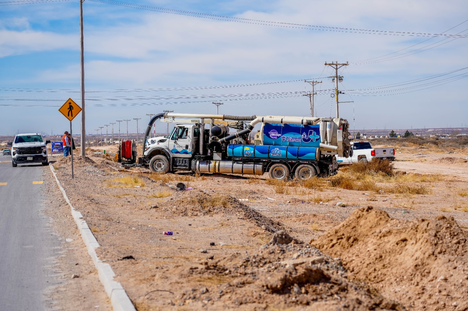 La Junta de Agua y Saneamiento de Juárez realiza trabajos de mantenimiento en el colector Oriente XXI, para solucionar los brotes de aguas negras registrados en el fraccionamiento Villas de Alcalá.