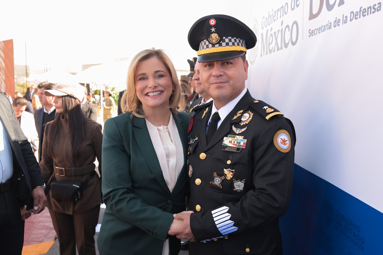 En el acto estuvieron presentes el general Felipe González, comandante de la 5/a Zona Militar; el general Humberto Ibarra, comandante interino de la Región Aérea Militar del Noroeste; el general Alejandro Rivas, coordinador estatal de la Guardia Nacional y el diputado Guillermo Patricio Ramírez, presidente del Congreso del Estado.