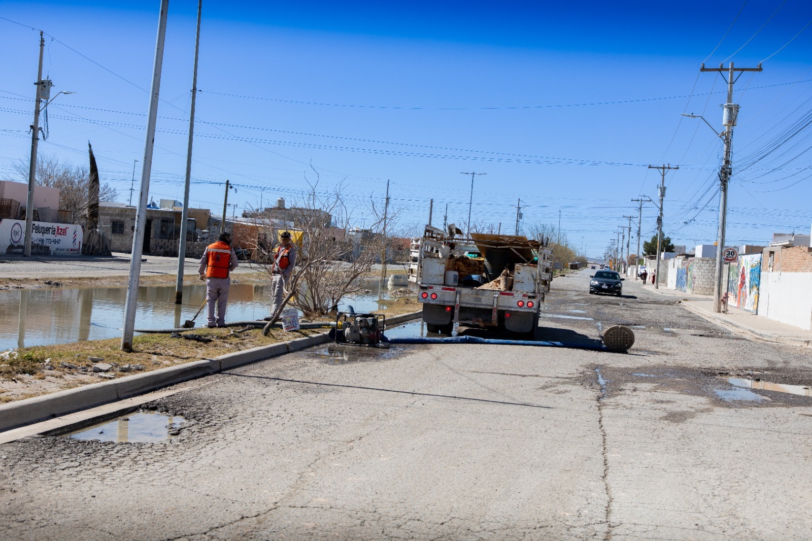 La Junta de Agua y Saneamiento de Juárez concluyó los trabajos de mantenimiento y limpieza en el fraccionamiento Villas de Alcalá, luego de varios días de labores para atender brotes de aguas negras.