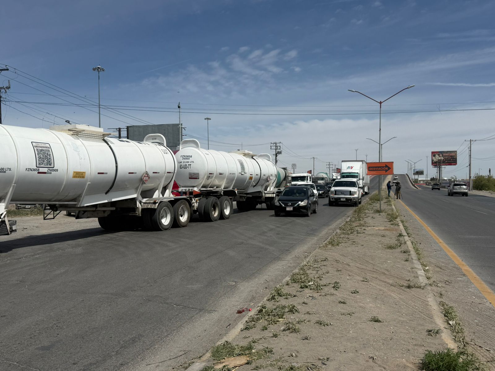 Integrantes de la Asociación Nacional de Transportistas (Antac) y el Frente Nacional para el Rescate del Campo Mexicano (FNRCM) se manifiestan esta mañana en el kilómetro de la carretera Panemericana, en Janos, Chihuahua y en Sacreamento donde mantienen un bloqueo únicamente a los transportistas.
