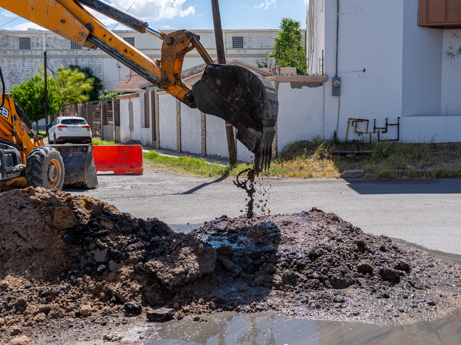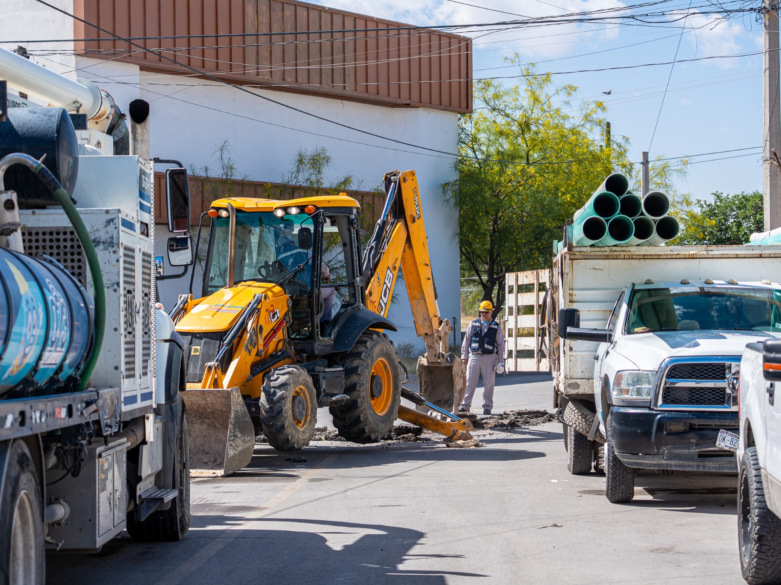 La Junta de Agua y Saneamiento de Ciudad Juárez realiza la reparación del colector de 30 pulgadas que cumplió su vida útil y que presentaba un hundimiento expuesto sobre la calle Anáhuac cruce con Eje Vial Juan Gabriel.